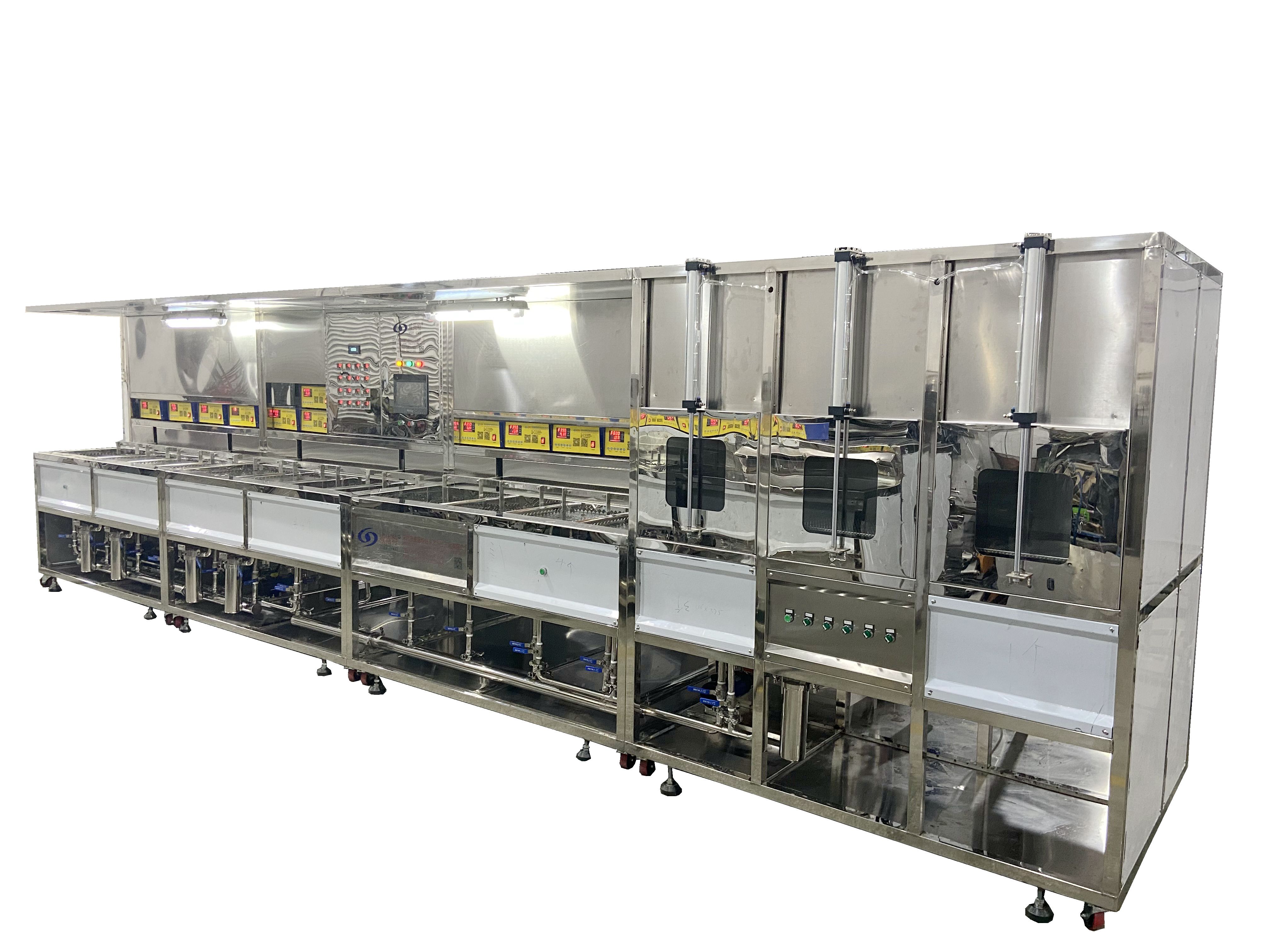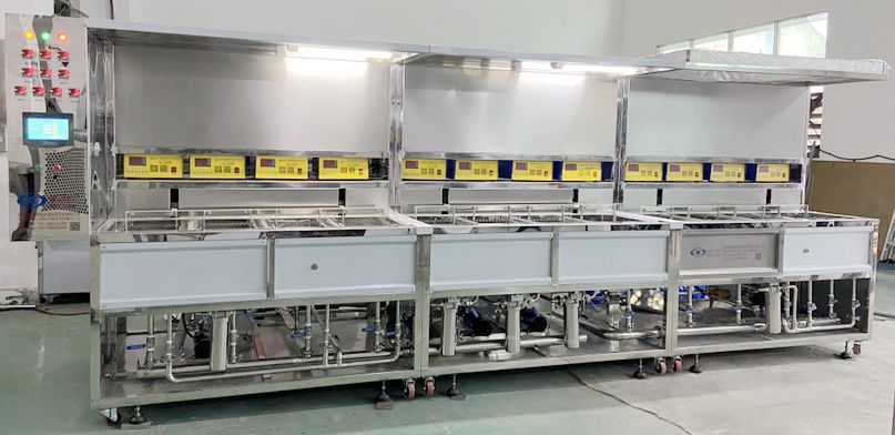 冷/熱反射鏡超聲波清洗機冷/熱反射鏡超聲波清洗機是一套光學(xué)玻璃洗凈超聲波裝置,使用者將裝好工件的工裝治具置入提籃后,手提置入槽進(jìn)行超聲波洗凈,當(dāng)預(yù)置的洗凈時間到達(dá)后依次送往后續(xù)各個洗凈工藝槽