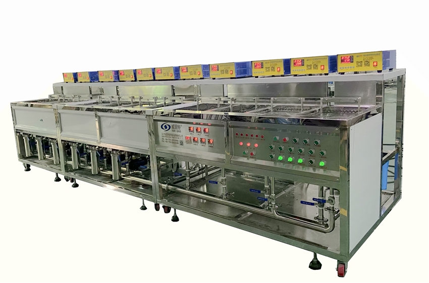 AR光波導電光學模組超聲波清洗機深圳威固特VGT-1407FH為光學玻璃超聲波清洗機,設備共有14個功能槽,配置有前處理系統、循環過濾系統、預熱箱系統、自動恒溫系統、拋動系統、超聲波清洗系統、抽風裝置等。
