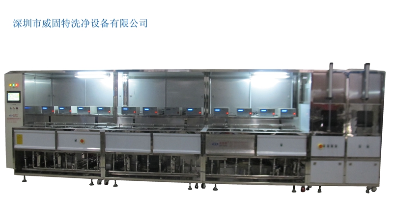 深圳威固特VGT-1509FT角反射器光學超聲波清洗機設備共有15個功能槽,配置有拋動系統(tǒng)、循環(huán)過濾系統(tǒng)、自動恒溫系統(tǒng)、超聲波清洗系統(tǒng)、定時系統(tǒng)、框架系統(tǒng)、CO2滅火系統(tǒng)等。設備采用環(huán)保型水溶劑洗滌、純水漂洗,為環(huán)保型清洗系統(tǒng)。