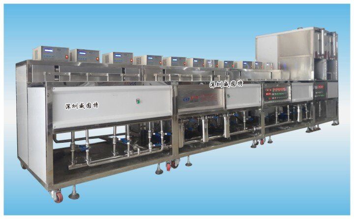 鋁材手機(jī)外殼陽極氧化處理光學(xué)超聲波清洗機(jī)威固特鋁材手機(jī)外殼陽極氧化處理光學(xué)超聲波清洗機(jī)主要有前清洗、工序間清洗、鍍膜前清洗、成品件的清洗等多種規(guī)格的機(jī)型組成。